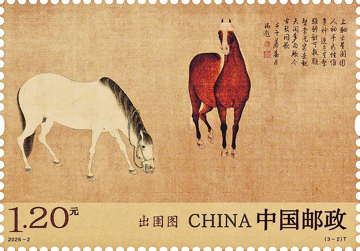 3月3日,《出圉圖》特種郵票1套3枚發(fā)行。郵票圖案名稱均為:出圉圖(局部)。