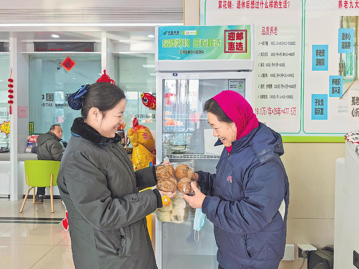 客戶到郵政網(wǎng)點自取團購預(yù)訂的饅頭。
