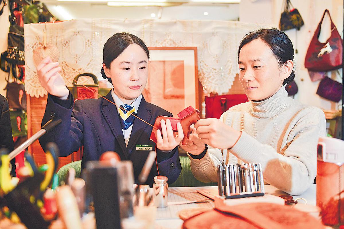開(kāi)店需要資金,正在鄭鼎耀四處籌措時(shí),來(lái)自福州市分行的一筆個(gè)人經(jīng)營(yíng)性貸款解了他的燃眉之急。有了這筆資金,新店裝修、原材料采購(gòu)等工作都得以順利推進(jìn)。如今,在鄭鼎耀的兩家店鋪內(nèi),寓意吉祥的石榴、紅魚(yú)皮雕掛件以及實(shí)用的小錢(qián)包、鑰匙包等產(chǎn)品深受喜愛(ài)?!坝辛私鹑谥С?,我們這些手藝人才敢大膽創(chuàng)新、拓展市場(chǎng)?!编嵍σf(shuō)。