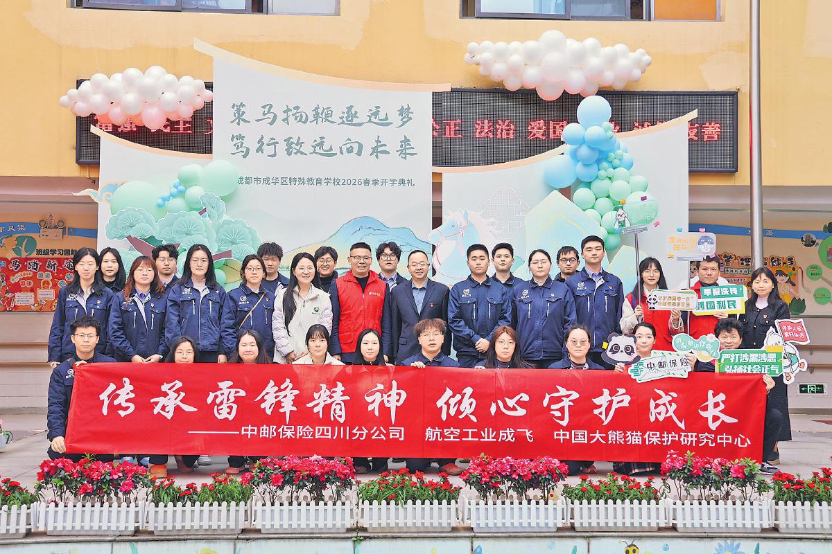3月2日,中郵保險(xiǎn)四川分公司聯(lián)合航空工業(yè)成飛、中國大熊貓保護(hù)研究中心,走進(jìn)成華區(qū)特殊教育學(xué)校,以新學(xué)期開學(xué)典禮為契機(jī),開展學(xué)雷鋒志愿服務(wù)活動(dòng)。中郵保險(xiǎn)青年志愿者為高年級(jí)學(xué)生帶來了一堂生動(dòng)有趣的“金融安全必修課”,提醒大家守護(hù)好“錢袋子”。 □鐘瓊瑤 攝影報(bào)道