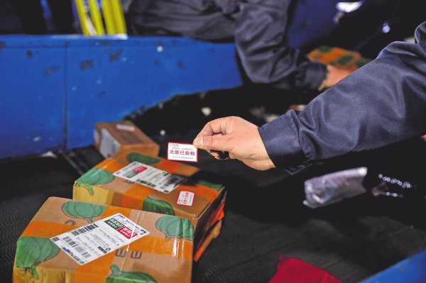 3月2日,北京郵政工作人員為快件粘貼“北京已安檢”標(biāo)識(shí),嚴(yán)格落實(shí)寄遞安檢措施,筑牢全國(guó)兩會(huì)期間寄遞渠道安全防線。