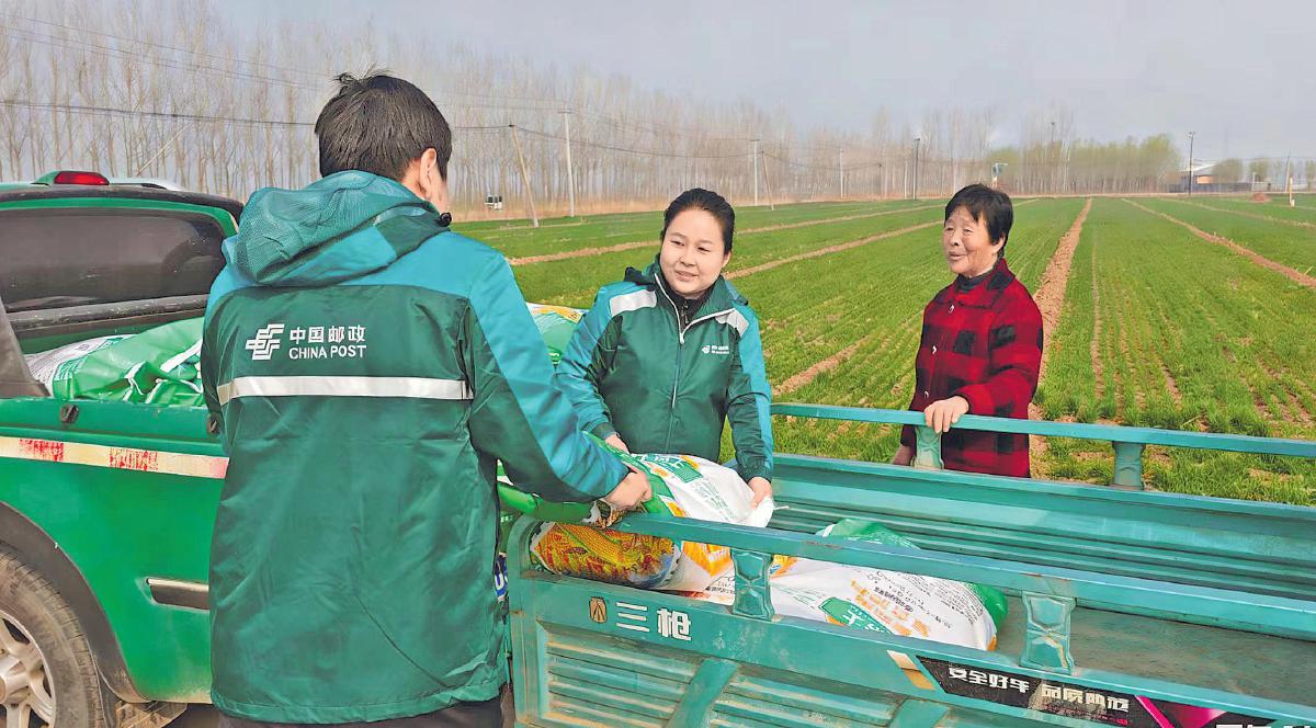 3月17日,在山東省德州市齊河縣大黃鄉(xiāng)彭太村的田間小路上,郵政員工開著小貨車早早地來到田間地頭,將化肥擺放到村民指定的位置。在魯西北,驚蟄一過,農(nóng)戶便開始陸續(xù)下地春耕。齊河郵政不僅及時將農(nóng)資配送到“最后一公里”,還幫農(nóng)戶邀請專業(yè)人員講解春天病蟲害防治等農(nóng)技知識,為農(nóng)戶春耕生產(chǎn)提供既省心又暖心的服務(wù)。