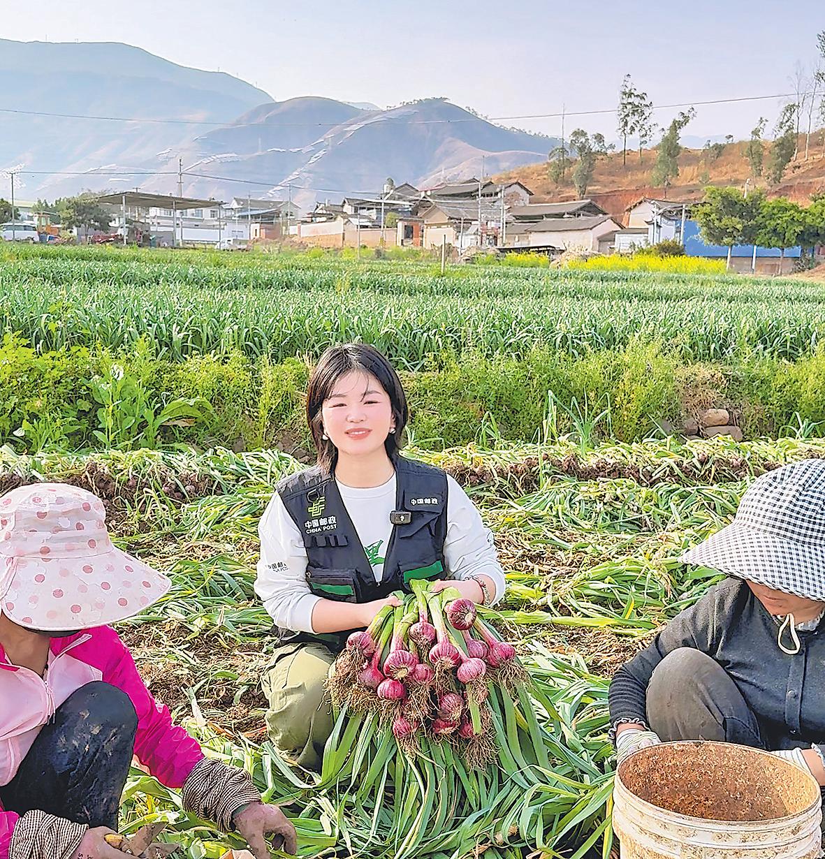 初春清晨,薄霧輕籠著山東省濟(jì)寧市金鄉(xiāng)縣的廣闊田野。這里出產(chǎn)的大蒜,是國家地理標(biāo)志產(chǎn)品。在郵政助農(nóng)直播間里,“95后”郵政主播小劉正對(duì)著鏡頭熱情介紹,手中托起一顆飽滿瓷實(shí)的紫皮蒜:“家人們看,這就是我們金鄉(xiāng)的四六瓣紫皮蒜,從恒溫保鮮庫直接發(fā)貨,蒜香特別濃郁!”她身后的合作社倉庫內(nèi),工人們忙碌而熟練地分揀、打包、貼單,流程井然有序。不遠(yuǎn)處,幾輛印有“中國郵政”字樣的綠色廂式貨車已準(zhǔn)備就緒。很快,這些優(yōu)質(zhì)大蒜就將通過郵政四通八達(dá)的網(wǎng)絡(luò),送到全國各地消費(fèi)者的手中。