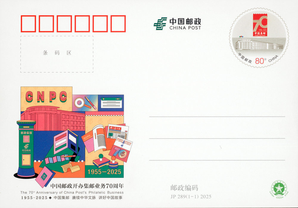 中國郵政定于2025年1月10日發(fā)行《中國郵政開辦集郵業(yè)務(wù)70周年》紀(jì)念郵資明信片1套1枚。詳情如下:
