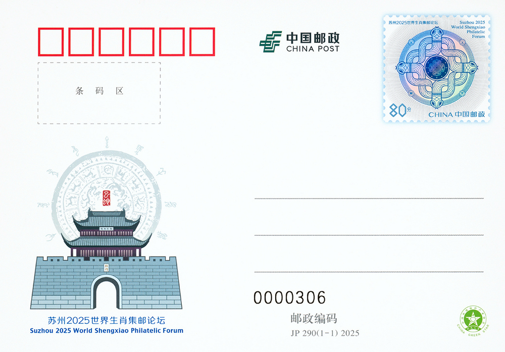 中國郵政定于2025年2月15日發(fā)行《蘇州2025世界生肖集郵論壇》紀(jì)念郵資明信片1套1枚。詳情如下: