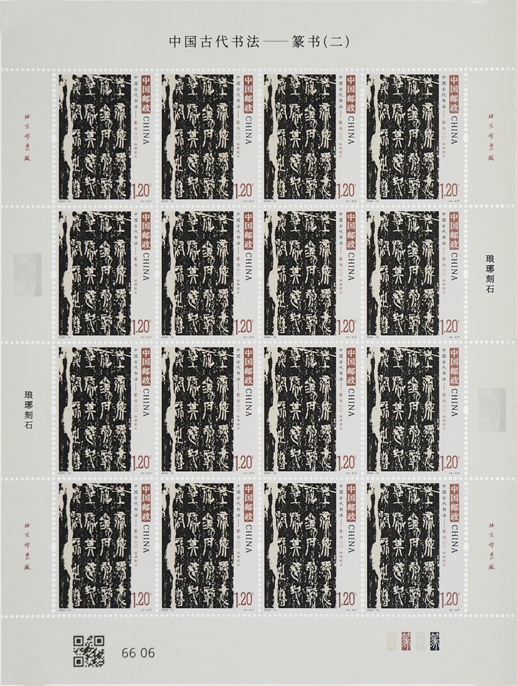 中國(guó)郵政定于2025年6月21日發(fā)行《中國(guó)古代書法——篆書(二)》特種郵票1套4枚,小型張1枚。詳情如下: