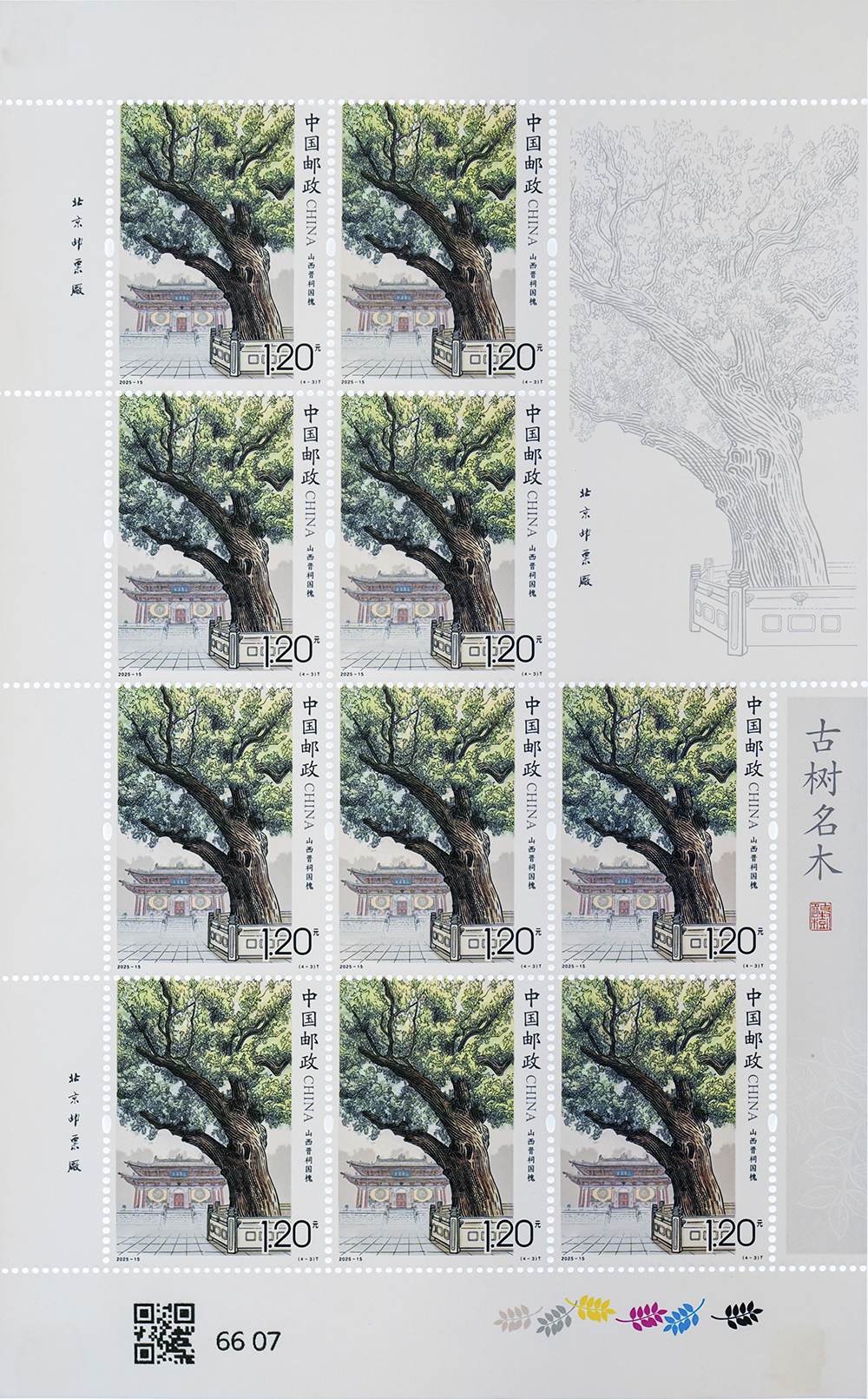 中國郵政定于2025年8月15日發(fā)行《古樹名木》特種郵票1套4枚,郵票圖案名稱為:山東定林寺銀杏、四川翠云廊劍閣柏、山西晉祠國槐、浙江普陀山普陀鵝耳櫪。全套郵票面值4.00元,計劃發(fā)行數(shù)量為470萬套。