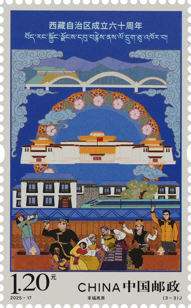中國(guó)郵政定于2025年8月15日發(fā)行《西藏自治區(qū)成立六十周年》紀(jì)念郵票1套3枚。詳情如下: